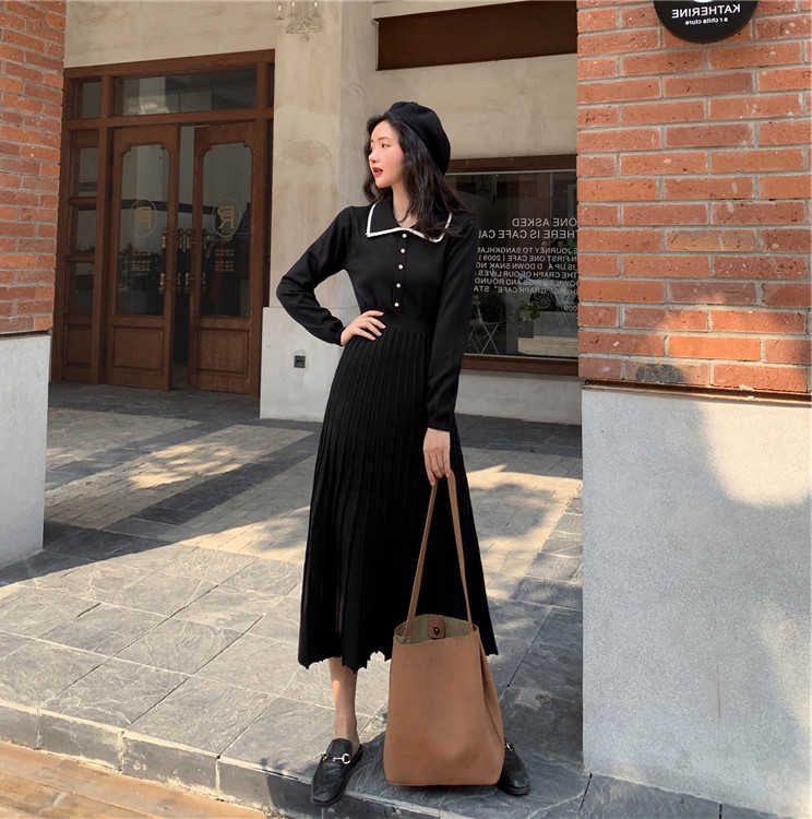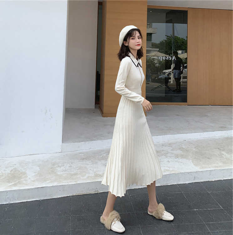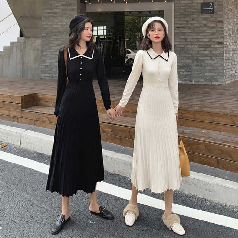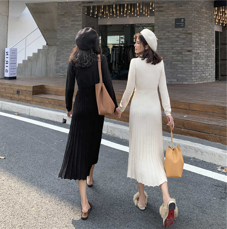 2020 autumn and winter new net red knitted inner dress long-sleeved medium-long version over-the-knee sweater skirt for women