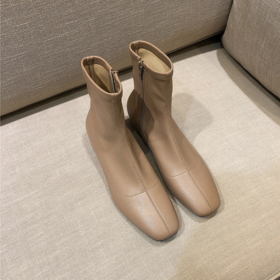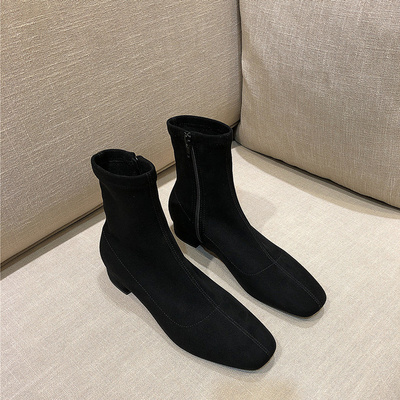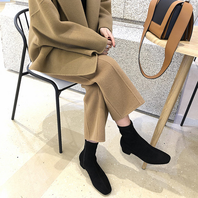 A pair of elastic socks that are easy to wear. You can know the good-looking short boots with the square head and the thick-heeled stretch boots.