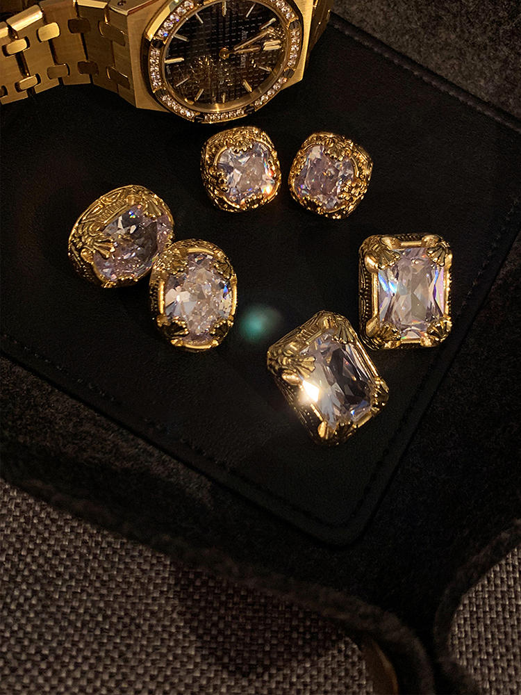 BOONEE◆Simple cold wind new fashion high-grade sense retro edging light luxury gem temperament earrings earrings for women