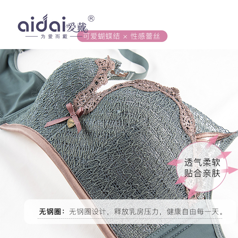 Love sexy converging lace bra close breast deep V embroidery without rims underwear women adjust the upper thin under thick
