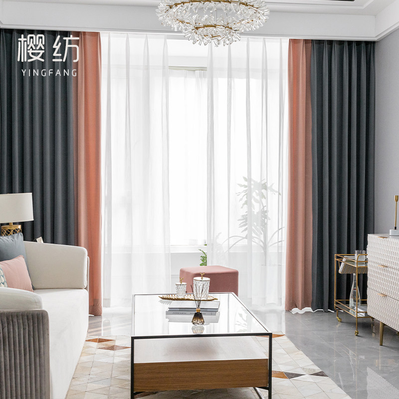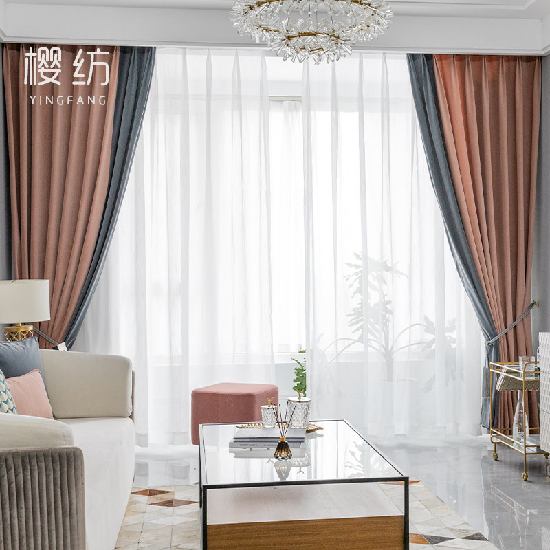 2019 new gray pink light luxury curtain custom living room blackout curtain bedroom simple modern gauze curtain