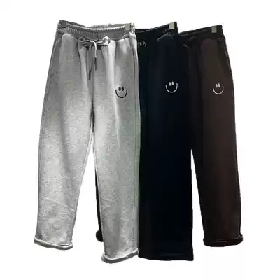 Plus velvet sweatpants women's winter new solid color smiley face embroidery loose thickened casual pants all-match sports pants 98256
