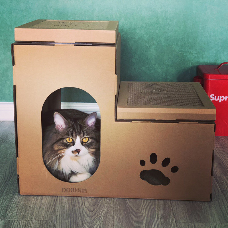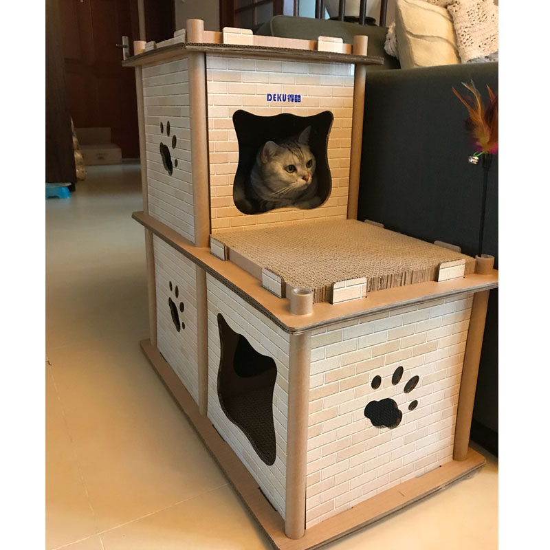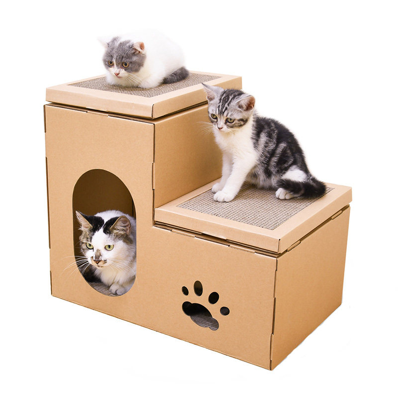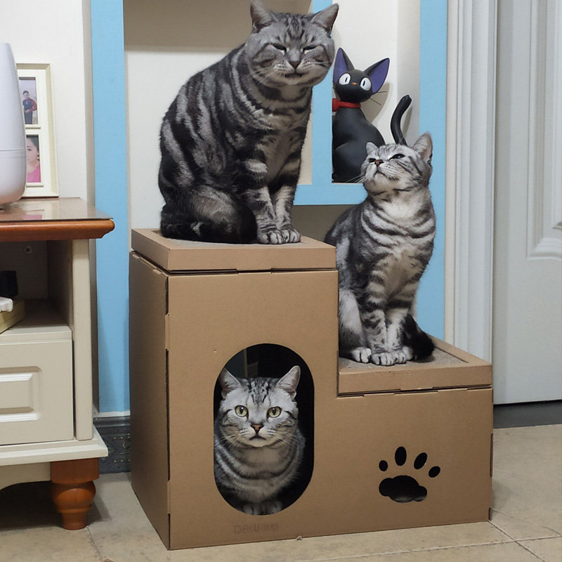 Double-layer ladder cat house primary color (can be DIY) thickened version of ladder cat house primary color (can be DIY) two-story ladder cat house printing color three-story ladder cat house printing color cat mansion printing color
