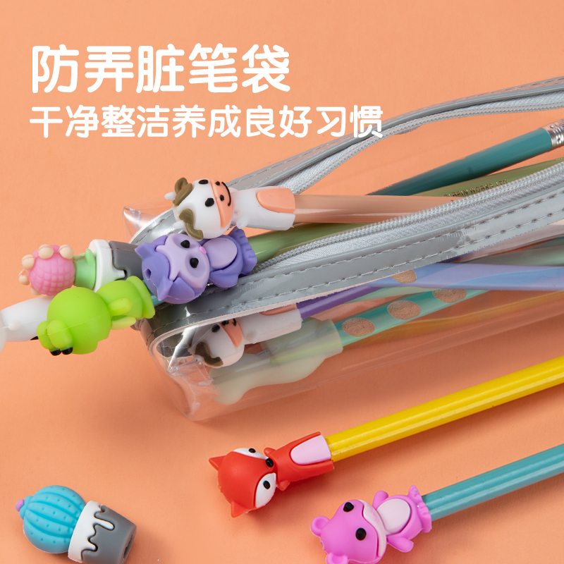 Small Fisher Pencil Cap Girl Cartoon Pen Cap Silicone Protective Sleeve Elementary School Students Cute Pencil Sleeve Soft Micelles Pen Cap Lenger Automatic Pencil Extender Stationery Pencil Head Anti Bite