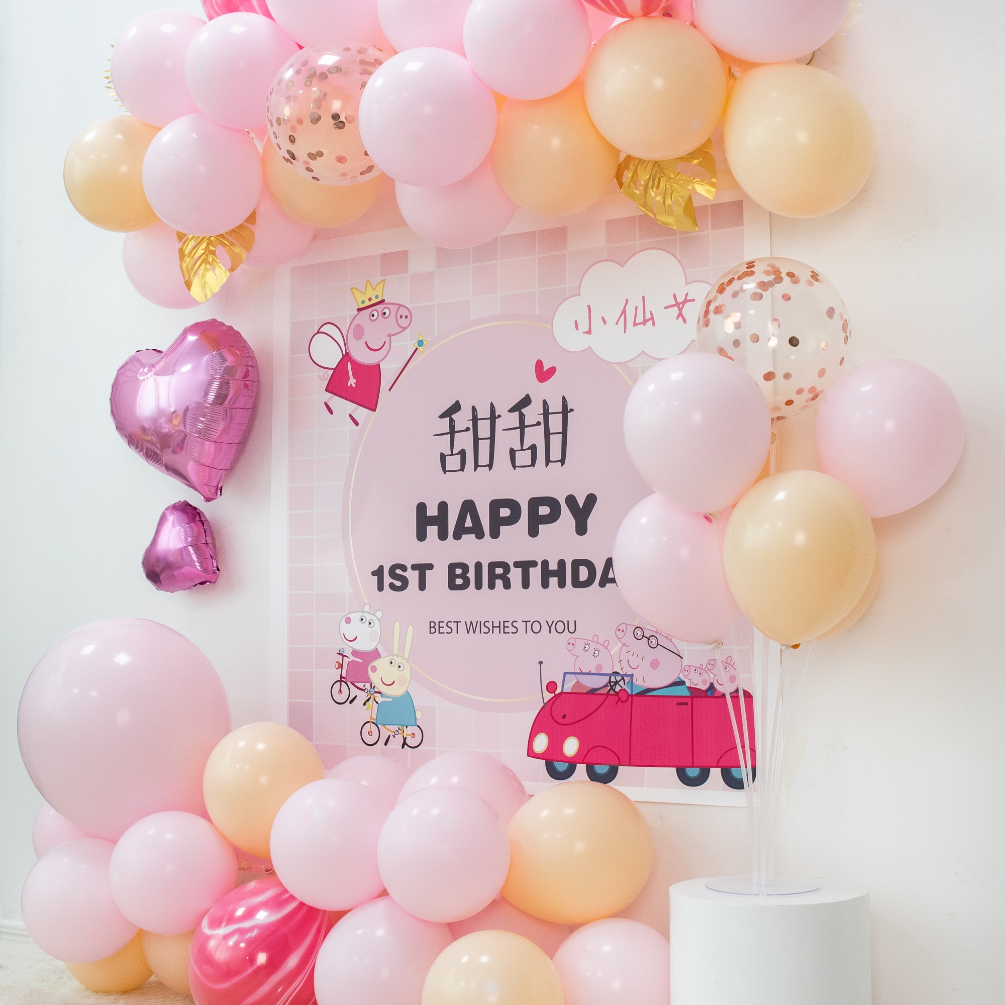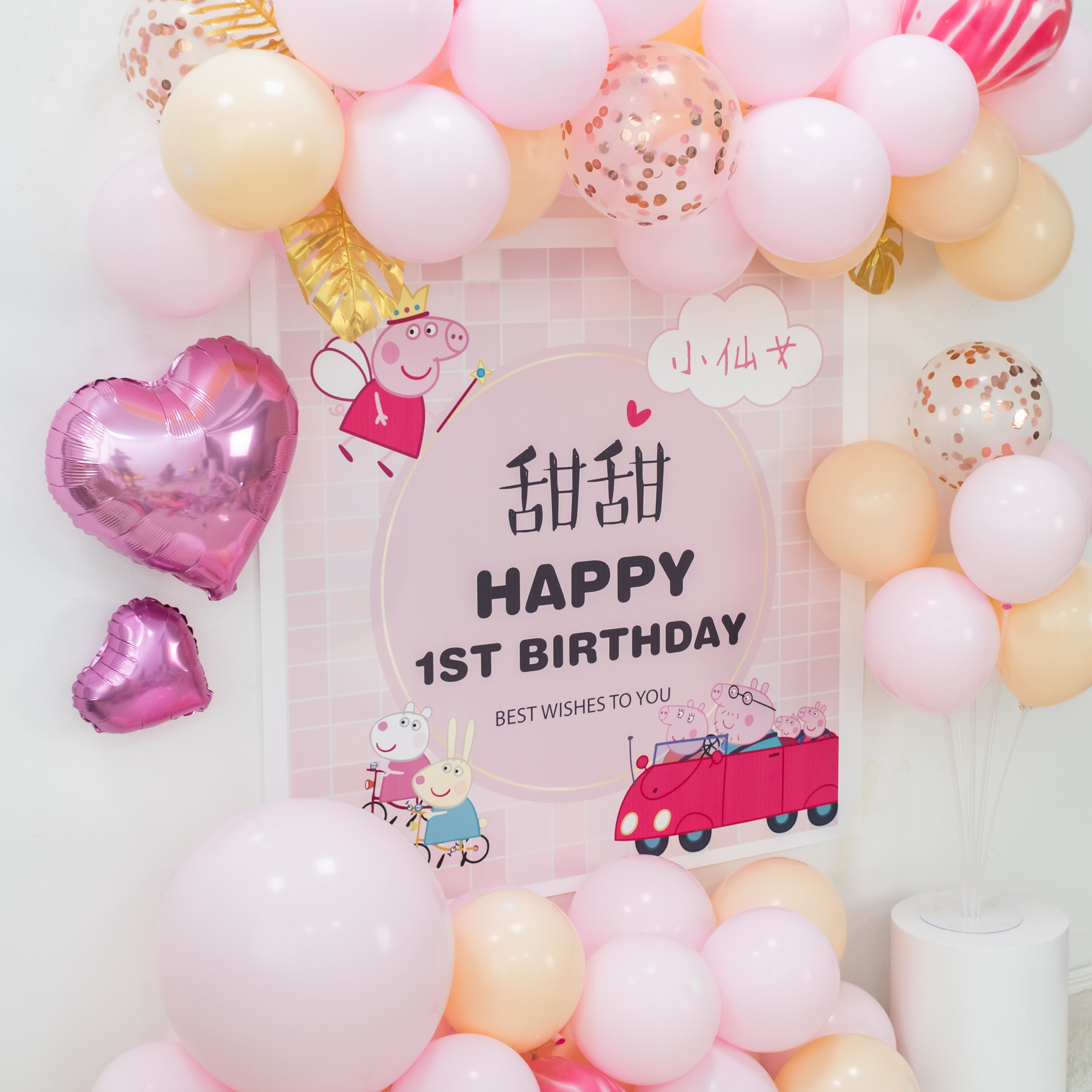 Piggy Peppa George Poster Custom Girl's First Birthday Decoration Decoration Hundred Day Banquet Party Background Wall Balloons