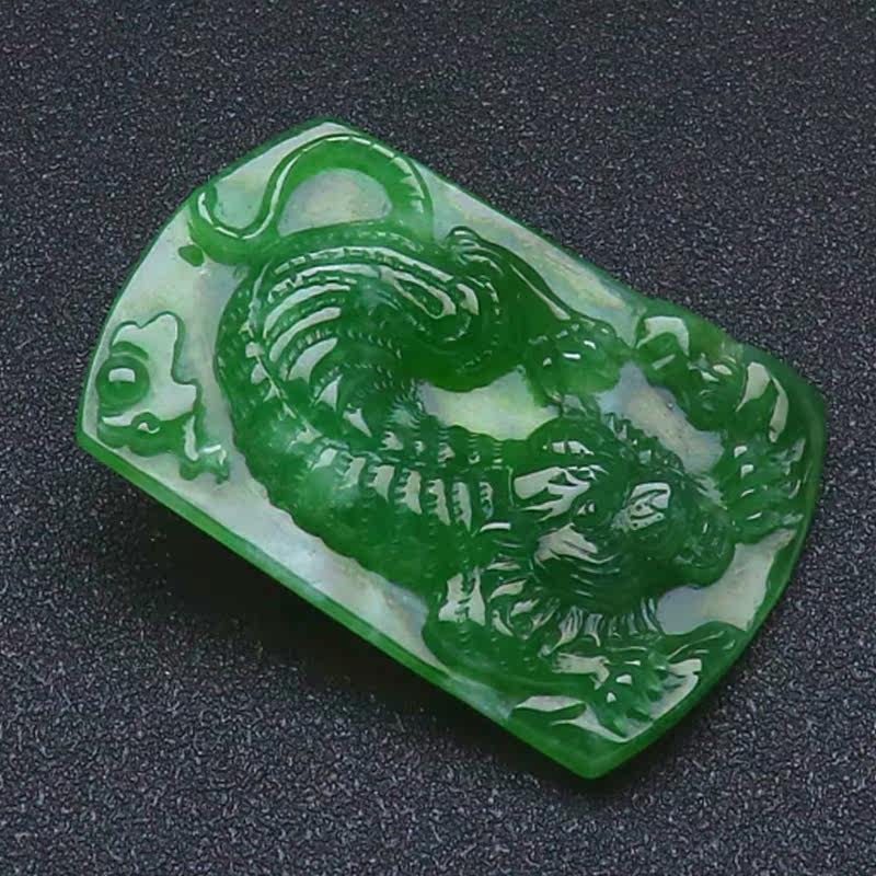Natural Myanmar old pit A goods jade down the mountain tiger jade pendant oil green deep green carved large registration with certificate