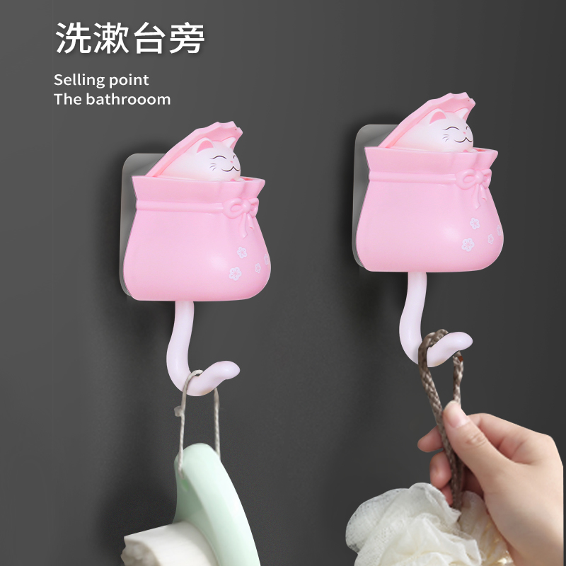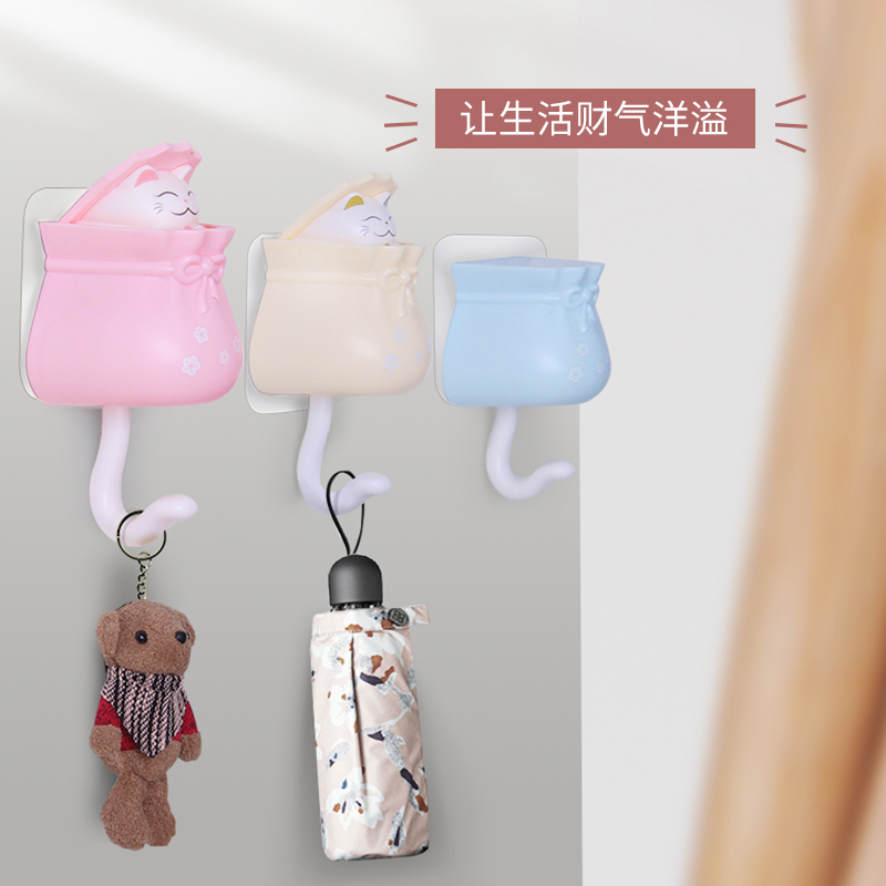 Recruit cat hook strong adhesive doorkeys to collect creative cute walls hanging out-punched squirrel cat bone