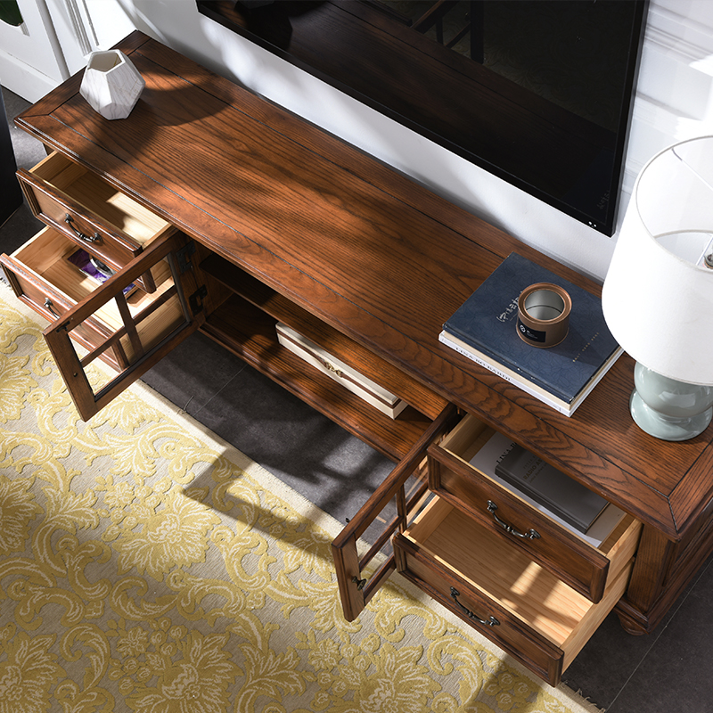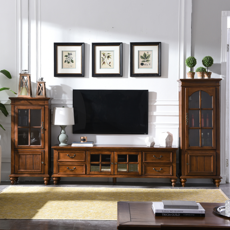 American Lockers Full Solid Wood TV Cabinet Eurostyle White Waxy Wood Furniture small family Living Room Tea Table TV Enclosure Combo