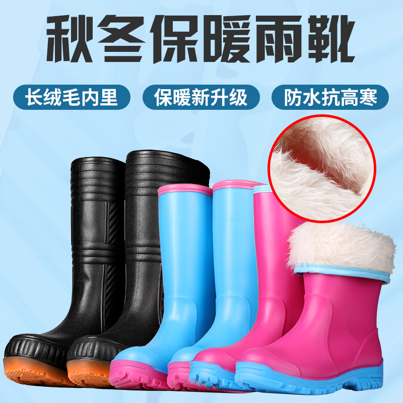 Flying Egrets Warm Rain Shoes Winter Plus Suede Rain Boots Women's Plush Anti-Slip Female Midcylinder Set Shoes Fashion Water Shoes 367