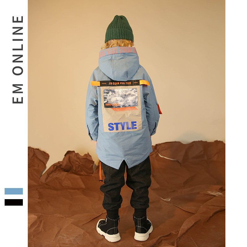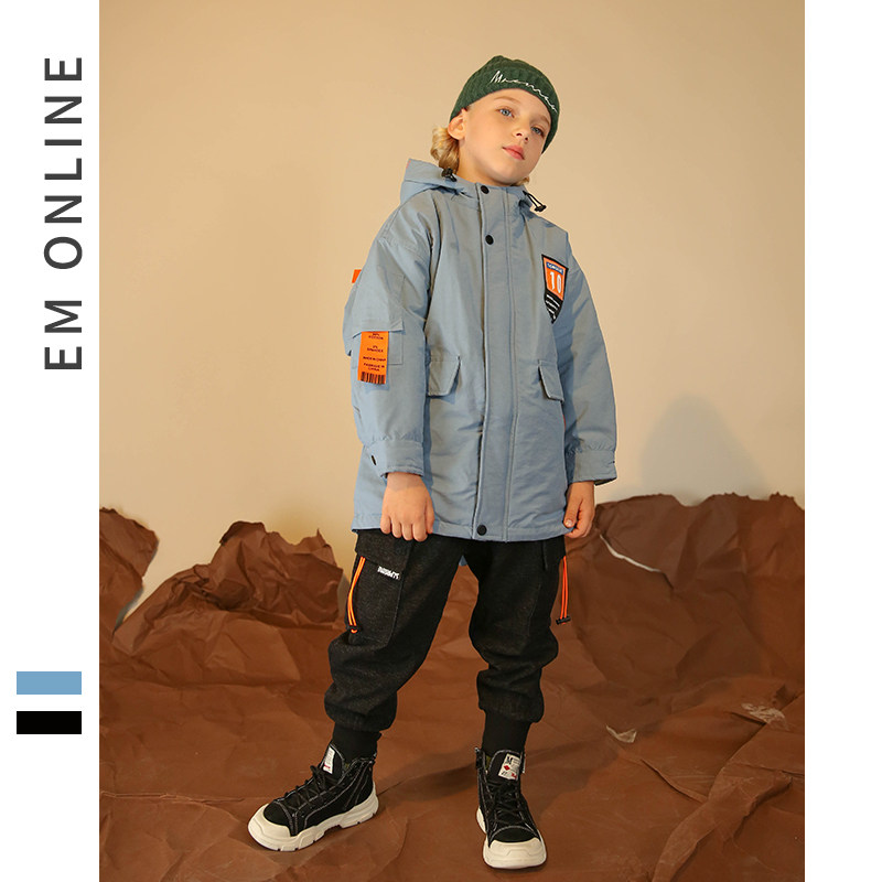 EM children's clothing 2019 winter new boys tooling cotton clothes large children thickened cotton clothes jacket medium and long version