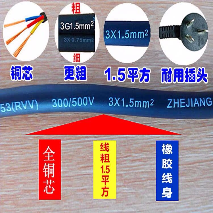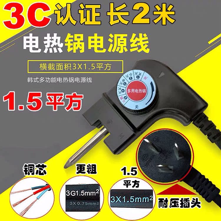 Rongshida household Korean multi-function cooking pot power cord electric frying pan accessories three-hole electric hot pot wire connection line