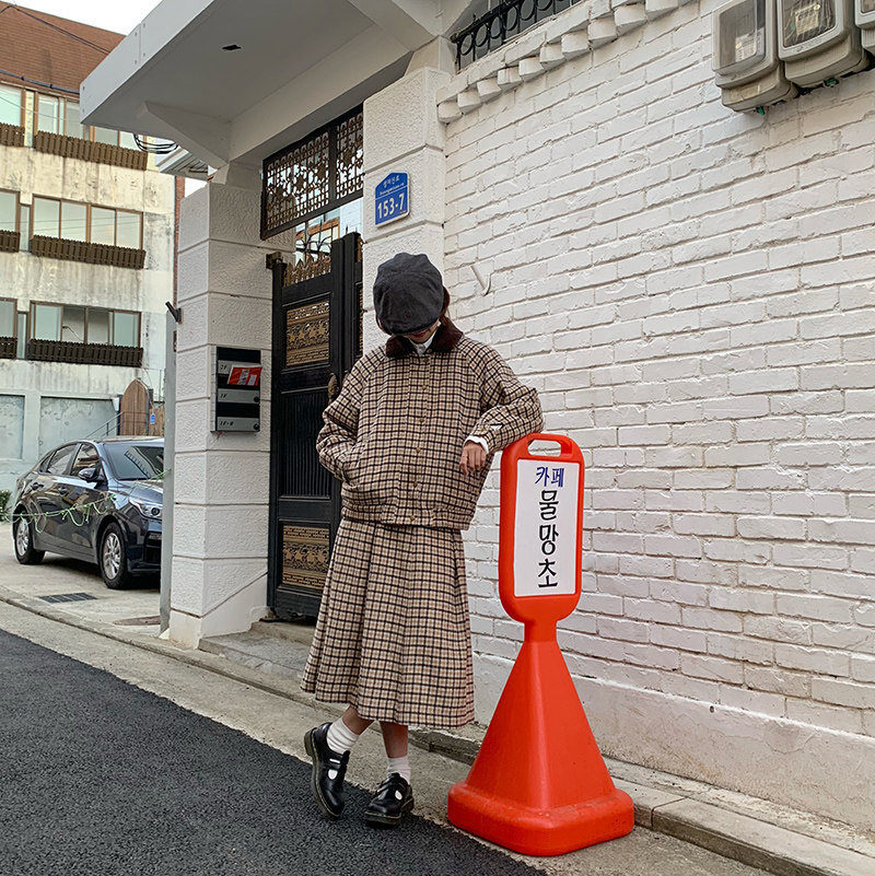 RAINY Summer Ex-gratia Retro Plaid Suit Woman 2020 new jacket Fashion half-body dress Two sets