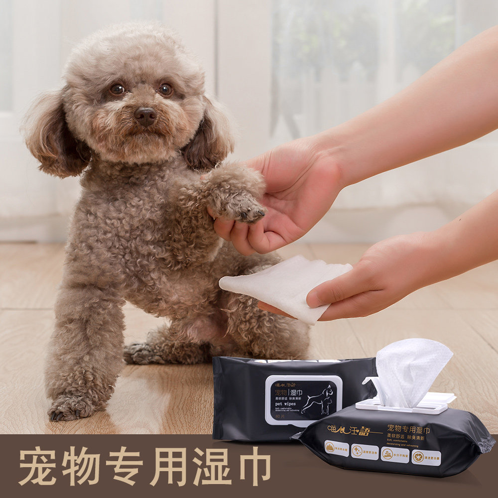 Thickened pet wipes to clean stray cats and dogs universal alcohol-free antibacterial deodorant to remove tear marks 80 pumps 4 packs