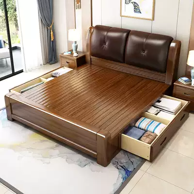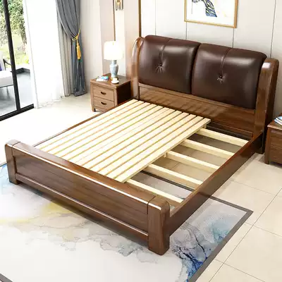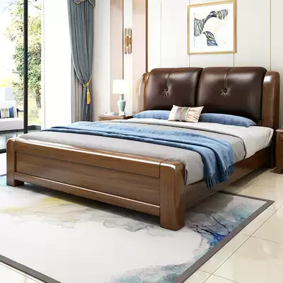 Walnut solid wood bed Chinese double bed 1 8 meters modern simple 1 5m bedroom light luxury master bedroom soft married bed