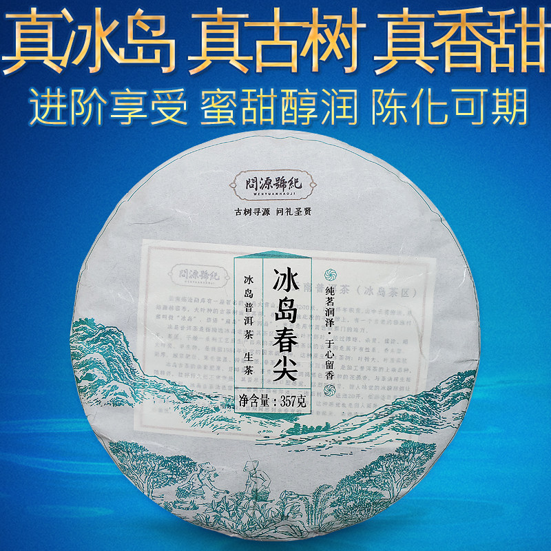 Icelandic spring pointed spring tea Icelandic Pu'er tea raw Pu'er ancient tree tea Yunnan Mengku Icelandic Pu'er raw tea cake 357g