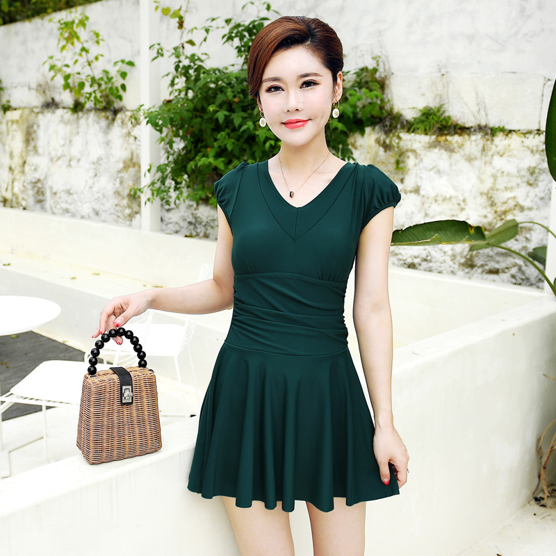 2022 new one-piece swimsuit woman covered with slim swimsuit Andromeda Fanins Wind net red large size short sleeve conservative type
