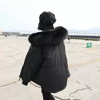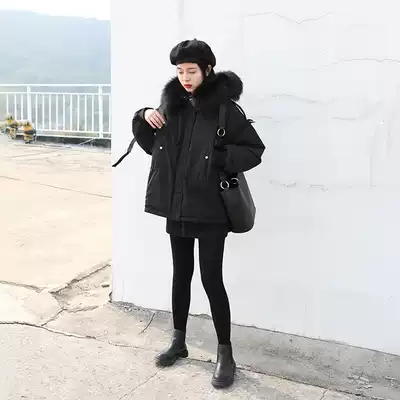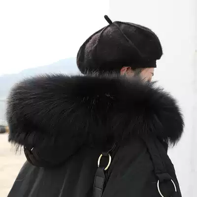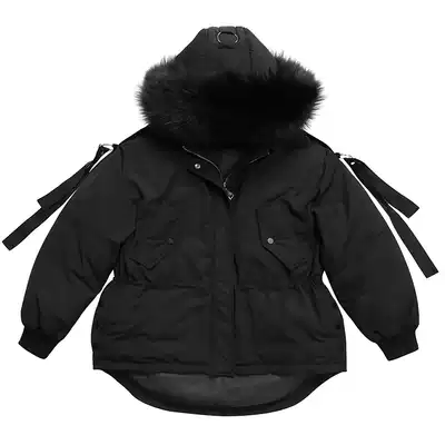 CHICVEN Korean version of solid color big raccoon hair collar fluffy warm fur white duck down down jacket thick jacket women's winter