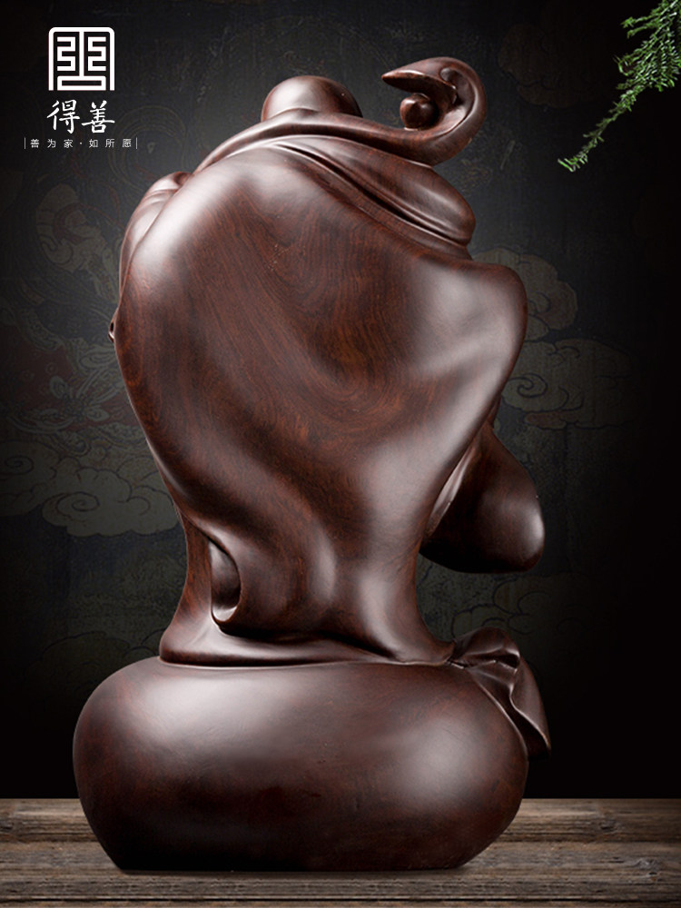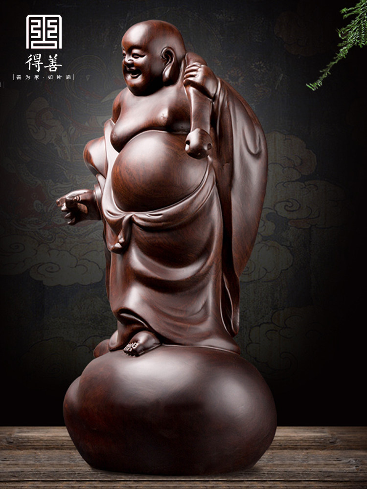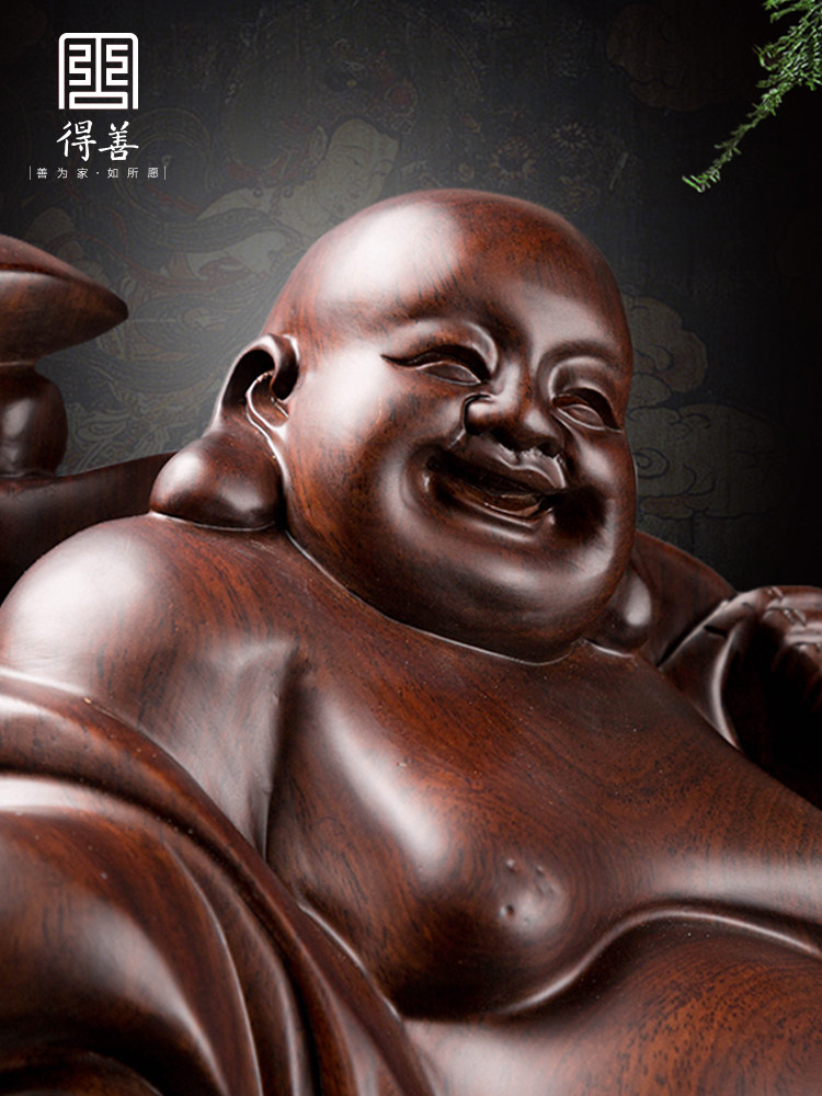 Ebony Maitreya Buddha wood carving elegant ornaments entrance wine cabinet decoration solid wood carving living room craft ornament Buddha statue