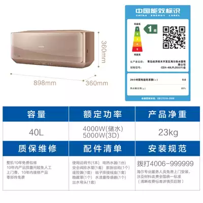 Casarte 40-liter household small speed heat increase capacity smart electric water heater energy-saving CEH-40LPLS5(U1) gold