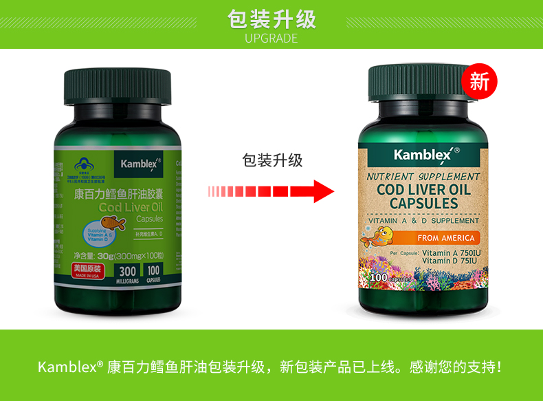 Buy 2 send 1 kang 100 force cod liver oil capsules 300mg bottles * 100 bottles of US imported Vitamin ad