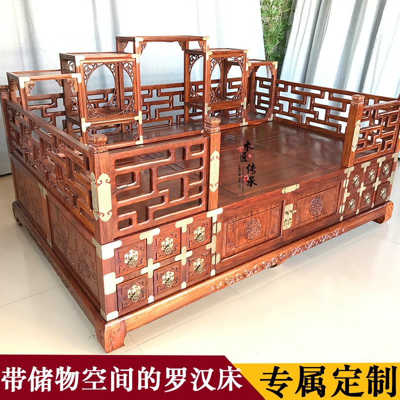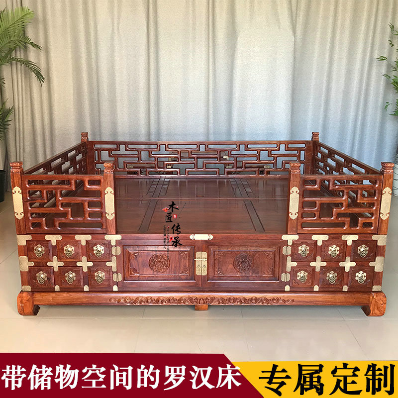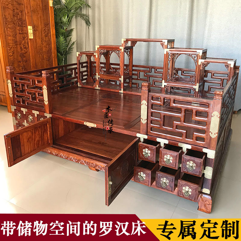 Mahogany furniture rosewood Aram bed with storage cabinet Chinese antique noble concubine Zen box double bed original