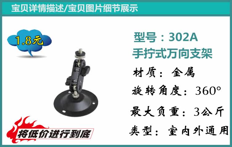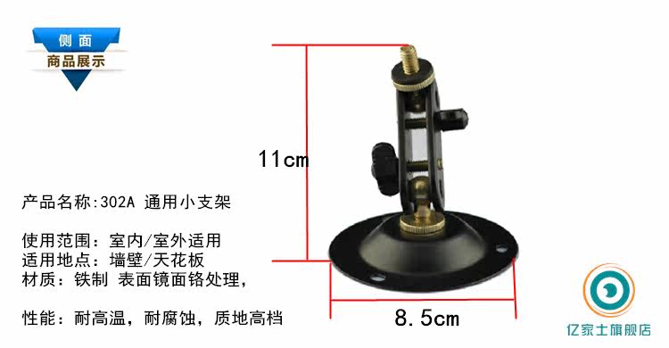 Haikang Fluorite Dahua Surveillance Camera Bracket 302A Wall Mounted Hoisting Indoor Outer Stainless Black Baking Varnish Bracket