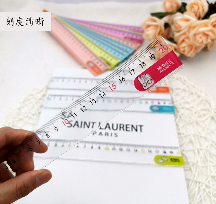 Chenguang plastic with wavy line ruler 20cm transparent drawing measuring ruler Korean style simple cartoon primary school students - Taobao