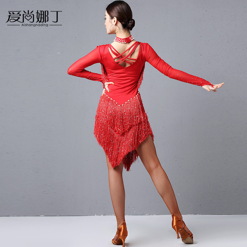 Esannadin Latin Dance Professional Show Girls Adult Competition Summer New Long Sleeve Sue Dress