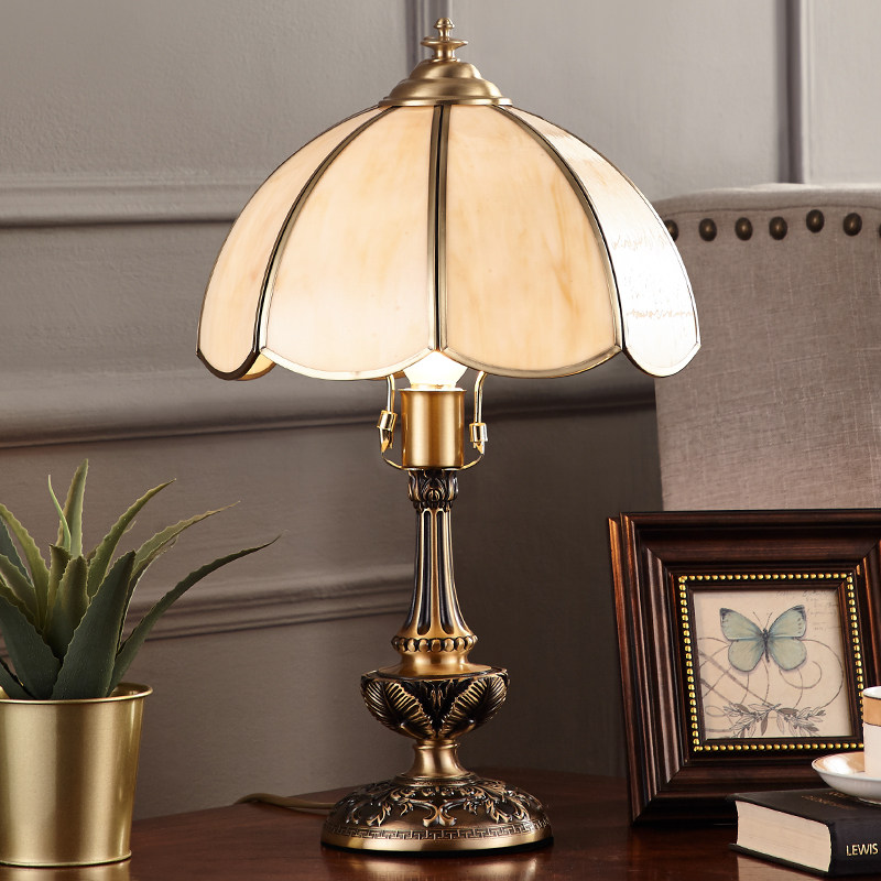 European copper bedroom lamp Net red household creative living room study Warm simple modern American bed lamp