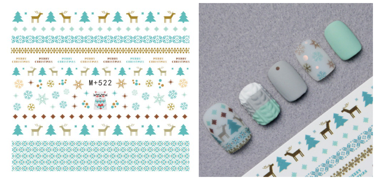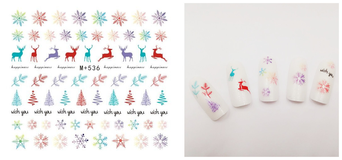 Nail Art Stickers Ultra Thin Waterproof Nail Polish Glue Phototherapy Watermark Decals Santa Tree Snowman Elk