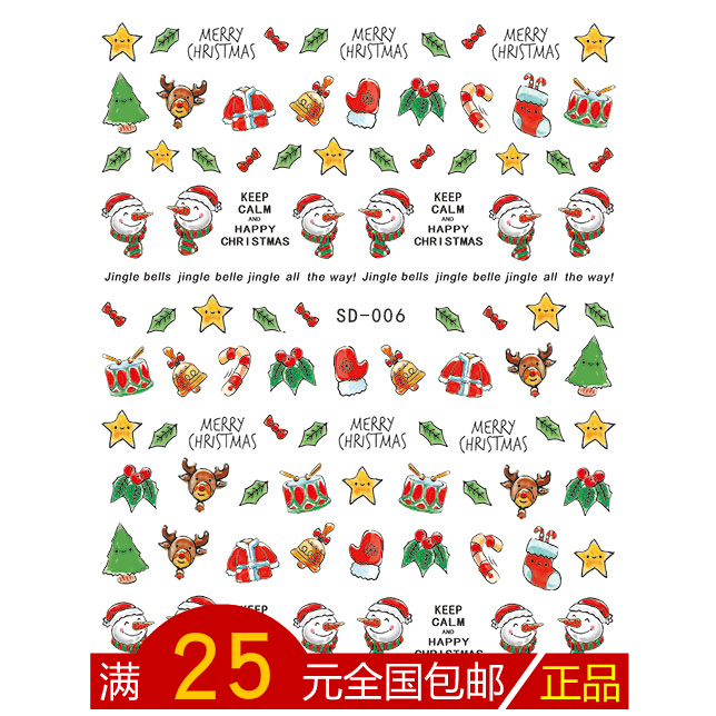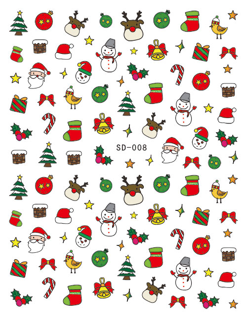 Extra cute color Santa Claus backglue nail sticker Nail sticker elk snowflake
