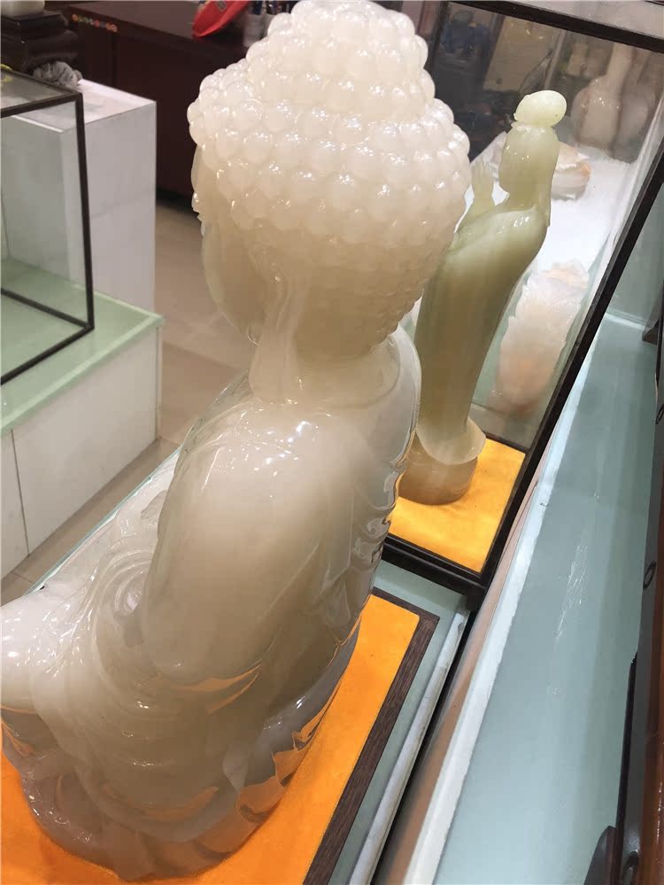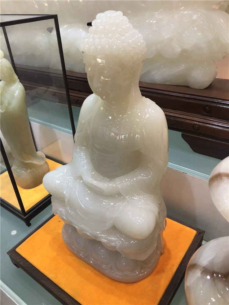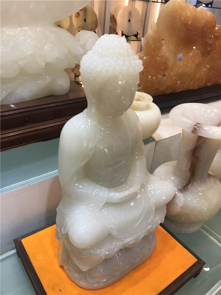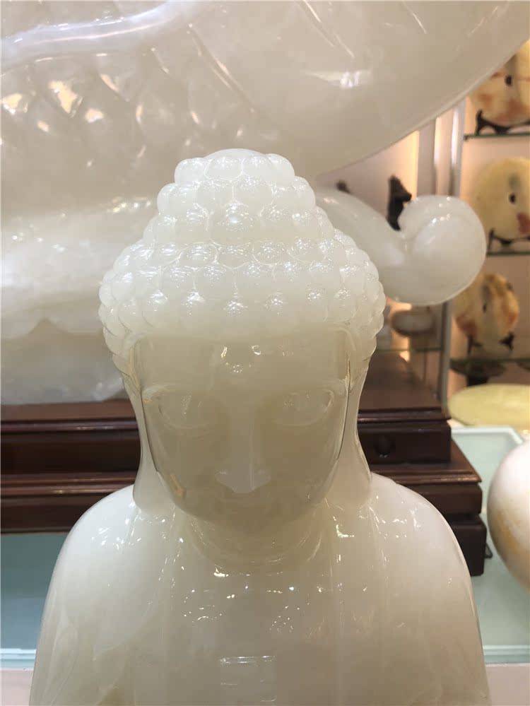 Natural white jade sitting Lotus Shakyamuni Buddha statue ornaments character Maitreya jade statue Town house home craft gift ornaments