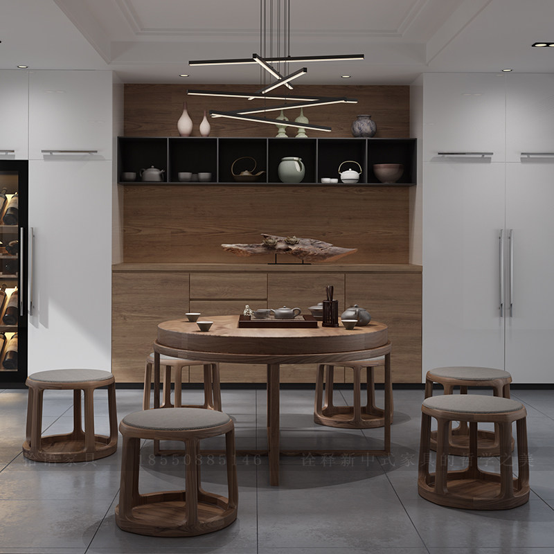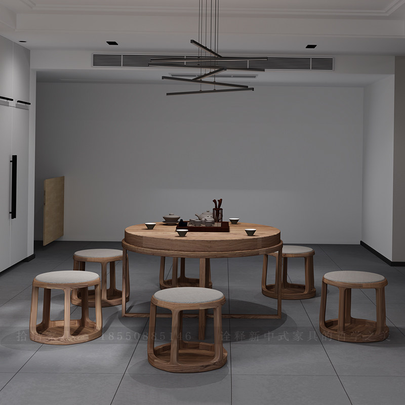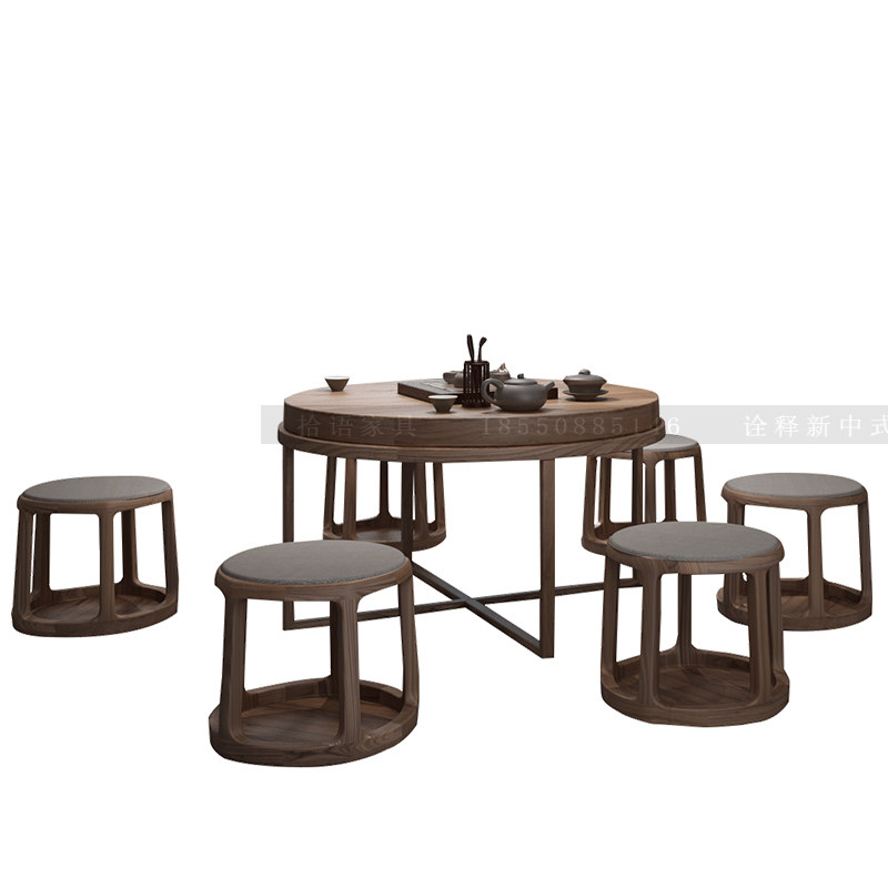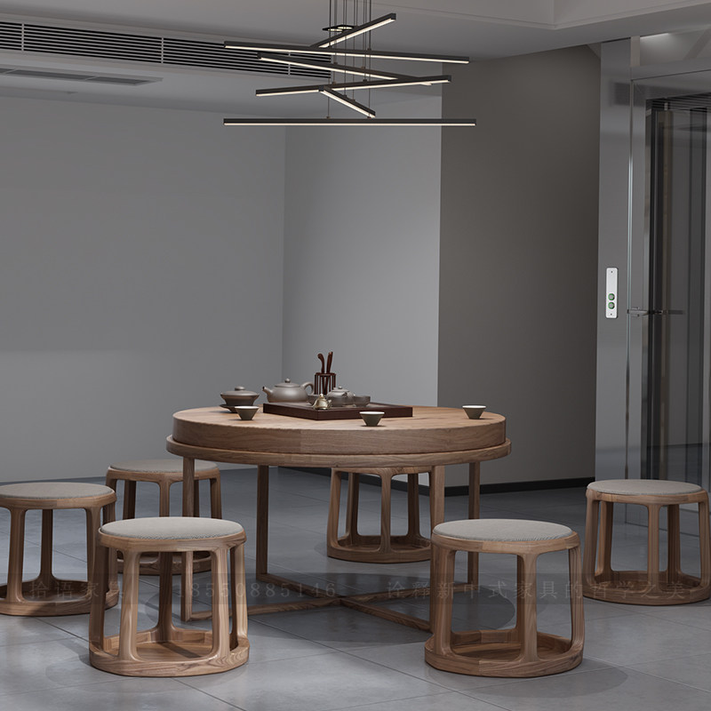 New Chinese style tea table and chair combination North American black walnut solid wood Kung Fu tea table simple Zen round tea table tea room furniture - Taobao
