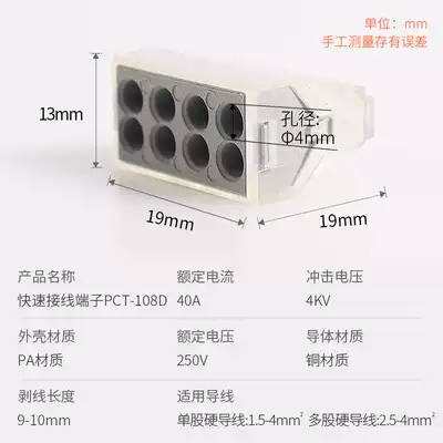 Terminal block household one-in-seven-out connector wire quick extension cord 8-hole junction box 1 point and 7 channels