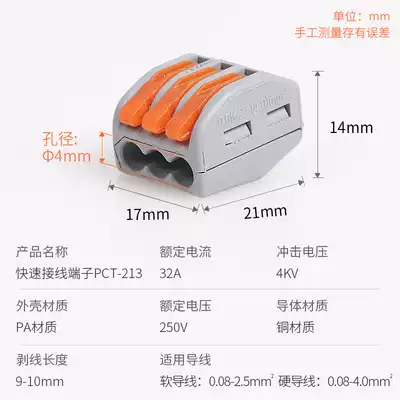 Quick terminal block electrical connector household wire extension cord press type wiring parallel one in and two out