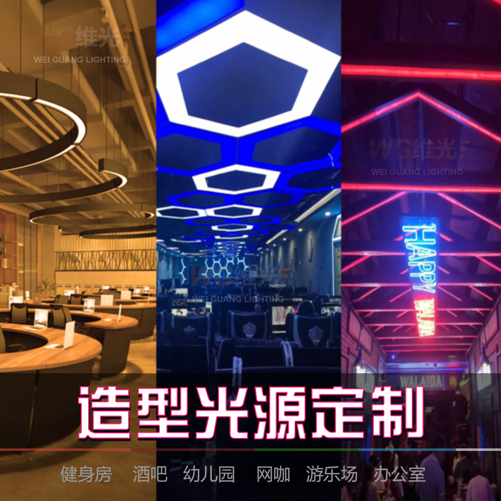LED modeling lamp technology sense chandelier gym Internet cafe showroom polygon arc shaped industrial wind special shape customization