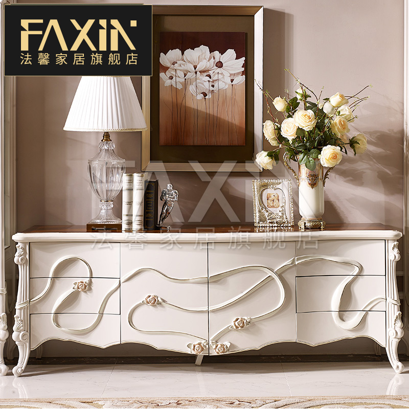 Italian French court solid wood TV cabinet Daping number European glass wine cabinet combination villa living room storage cabinet