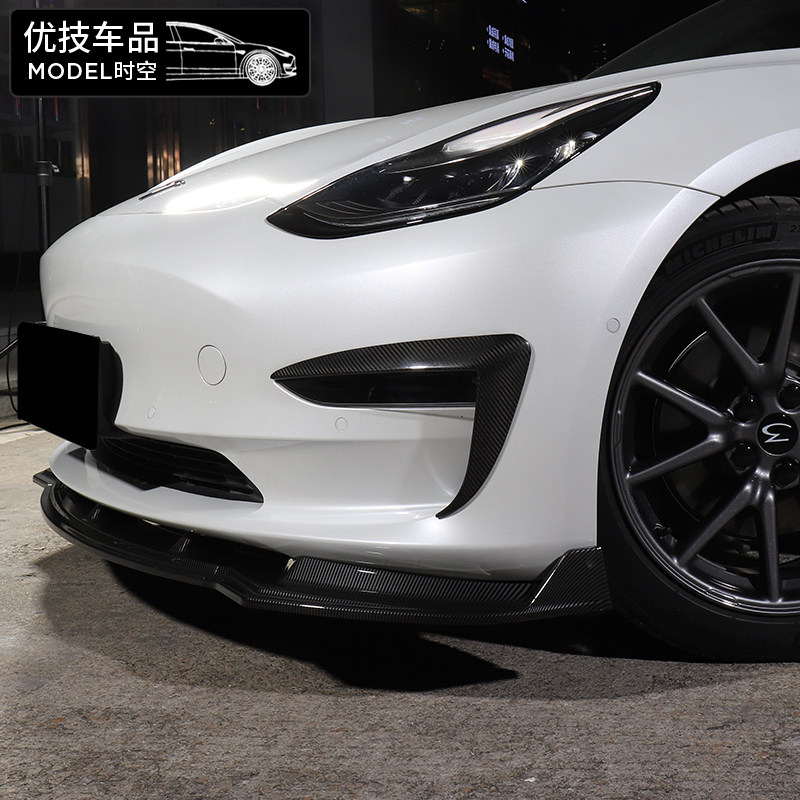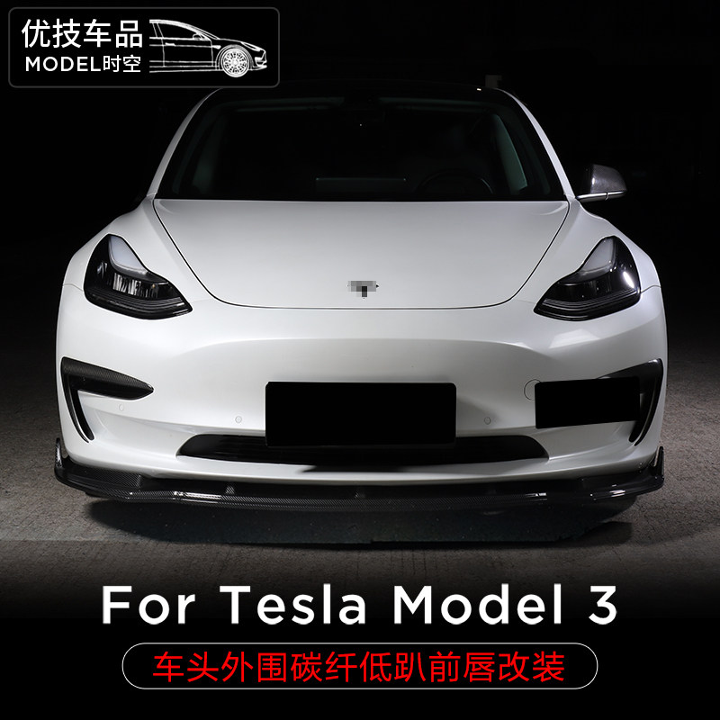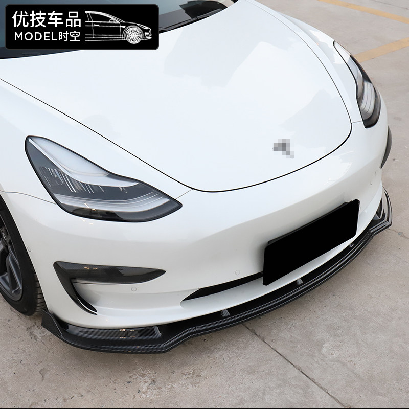 Suitable for Tesla Tesla Tesla Model3 low groveling front shovel ABS Carbon fiber print out front lip Decorative Accessories