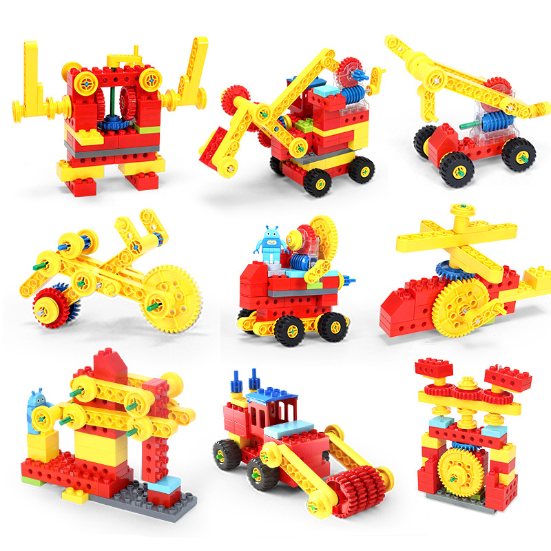 Various combinations of large particle engineering vehicles of early teaching power mechanical gear block teaching tools of 100 variations DIY creative block