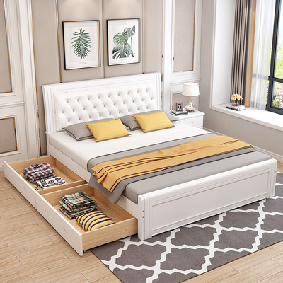 Solid wood bed double bed modern simple 1 8m economy 1 2 pine soft bag bed 1 5 m master beds