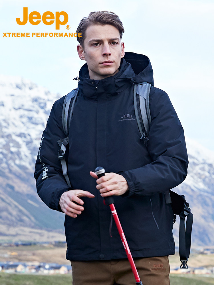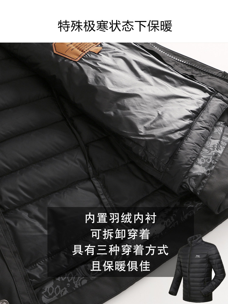 Jeep jeep jacket men's three-in-one detachable inner bile down jacket two-piece winter fleece thick coat