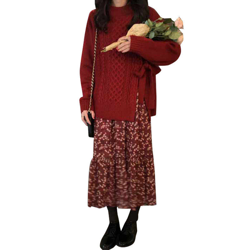 Single piece of red foreign dress (advanced feeling pregnant woman covered with no light fresher skirt out of fashion) single piece of red sweater (advanced feeling pregnant woman covered with no small fresher skirt out of fashion) sweaters