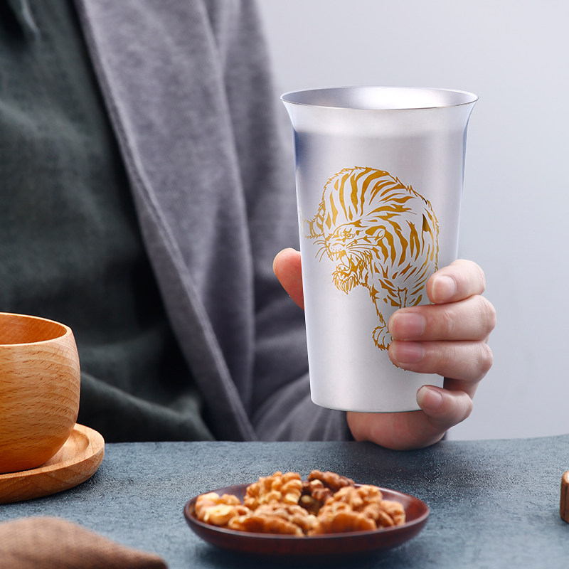 Japan HORIE imports Horie titanium cup titanium water cup wide-mouth pure titanium cup titanium beer mug titanium alloy white wine glass
