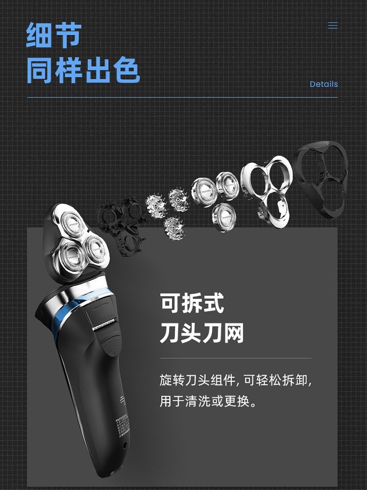 Washable skin care floating cutter head LED screen display sideburns trimming