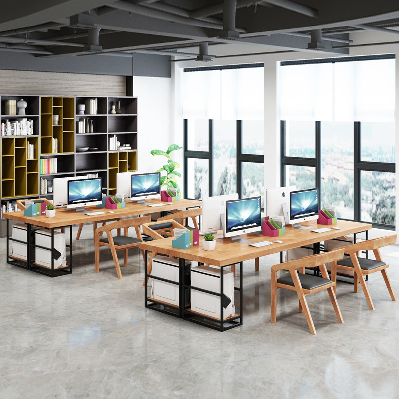 LOFT double solid wood computer desk simple desk staff desk 4 people industrial style office furniture