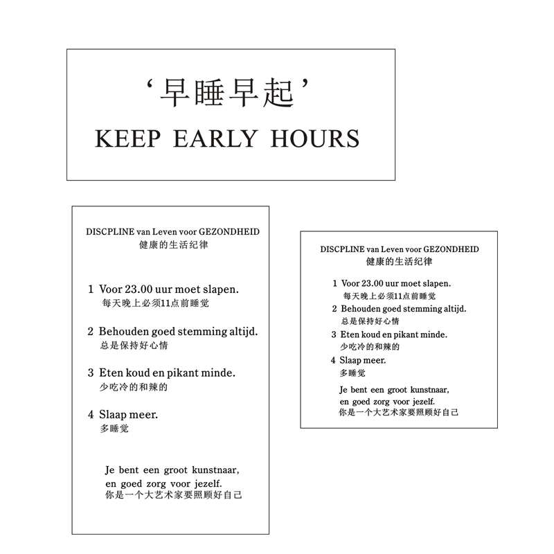 Go to bed early, get up early, small cards, healthy life discipline, bedroom, dormitory wall, a set of three photo props