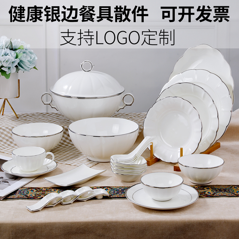 Bone porcelain silver edge tableware loose pieces DIY free mix with home bowls disc spoons Ceramic Pumpkin Instrumental type Custom LOGO