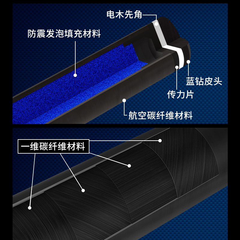 CUPPA Black Tech Fiber Carbon Table Ball Rod Chinese Black Octake Billiard Cue Snooc Small Head Through Rod