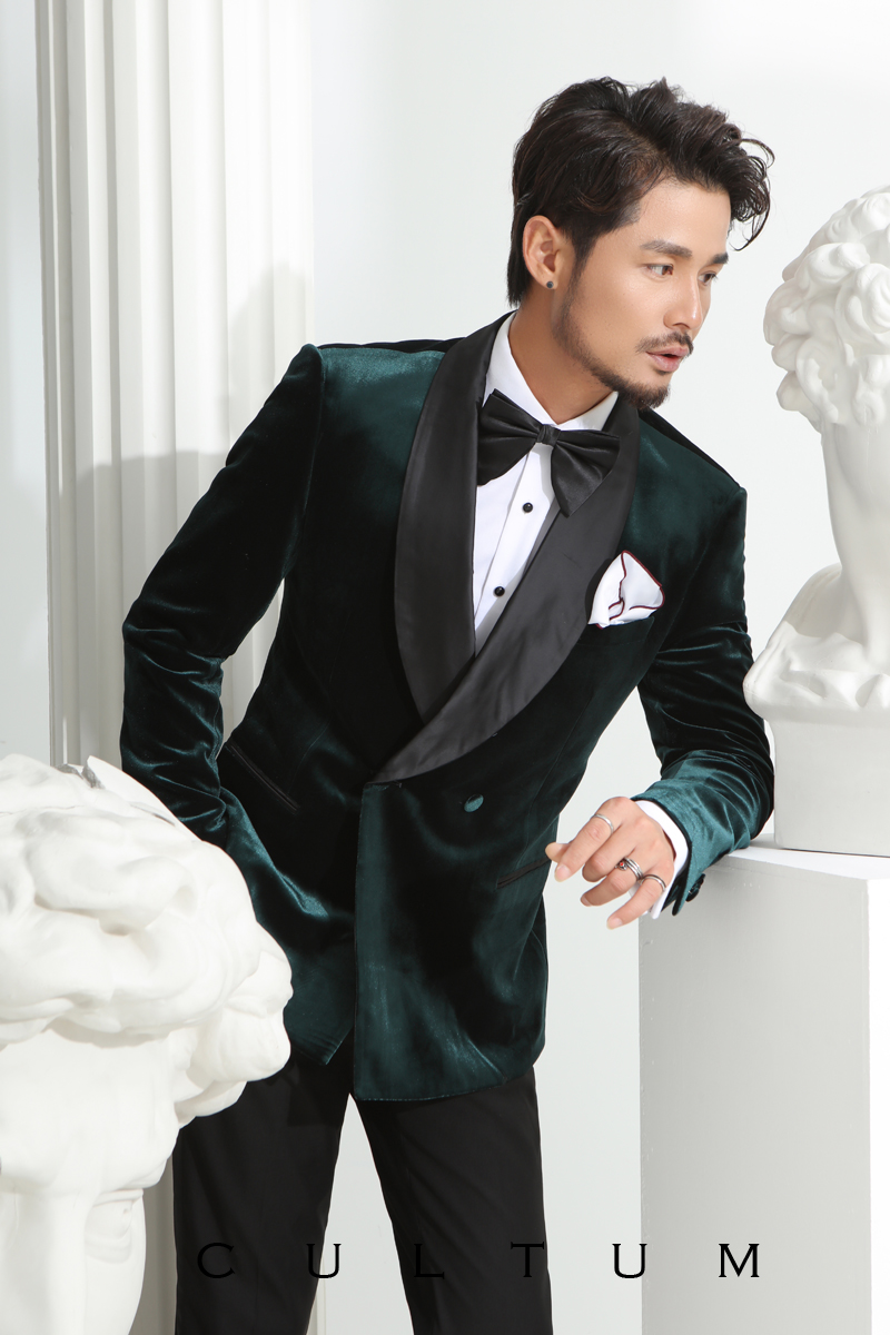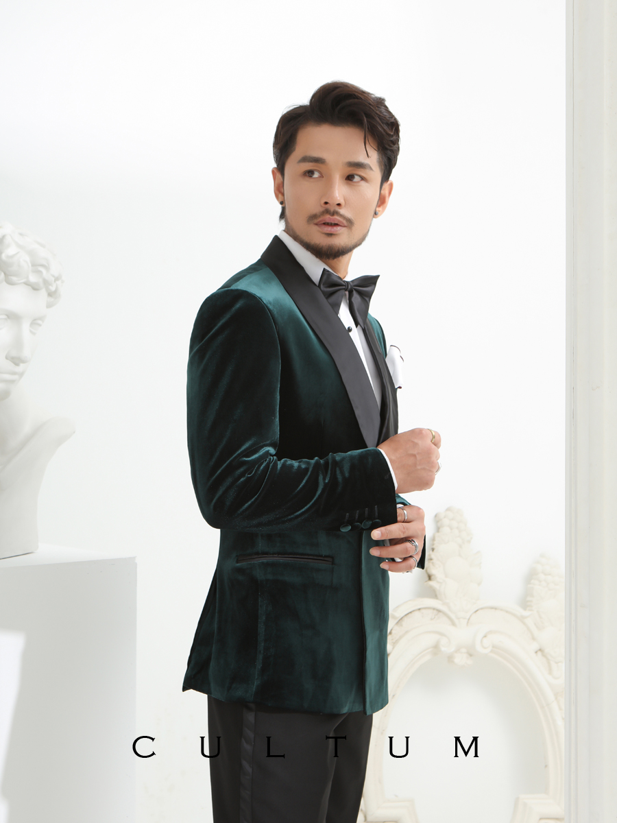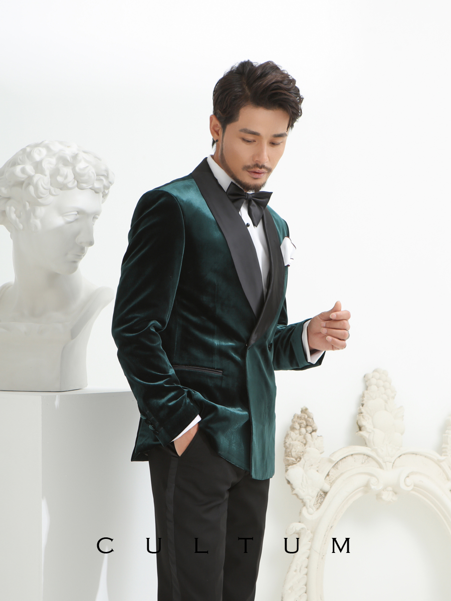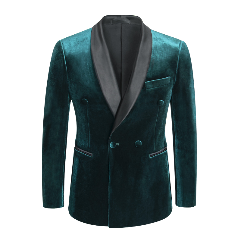 High Set Wedding Banquet Velvet Green Fruit Collar Western Suit Youth Sashimi Gown Suede Gown Single West Man