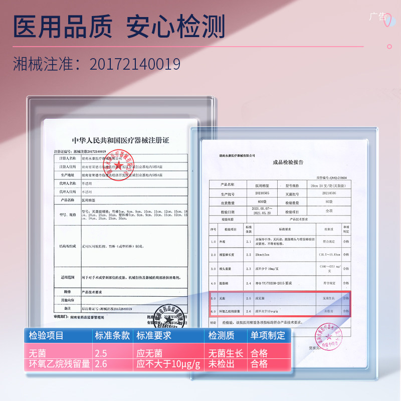 Zhende Medical Large Head Cotton Stick Medicine Cotton Stick Sterile Gynecologic Disinfection Clean Big Cotton Stick Degreased Cotton Flower Stick